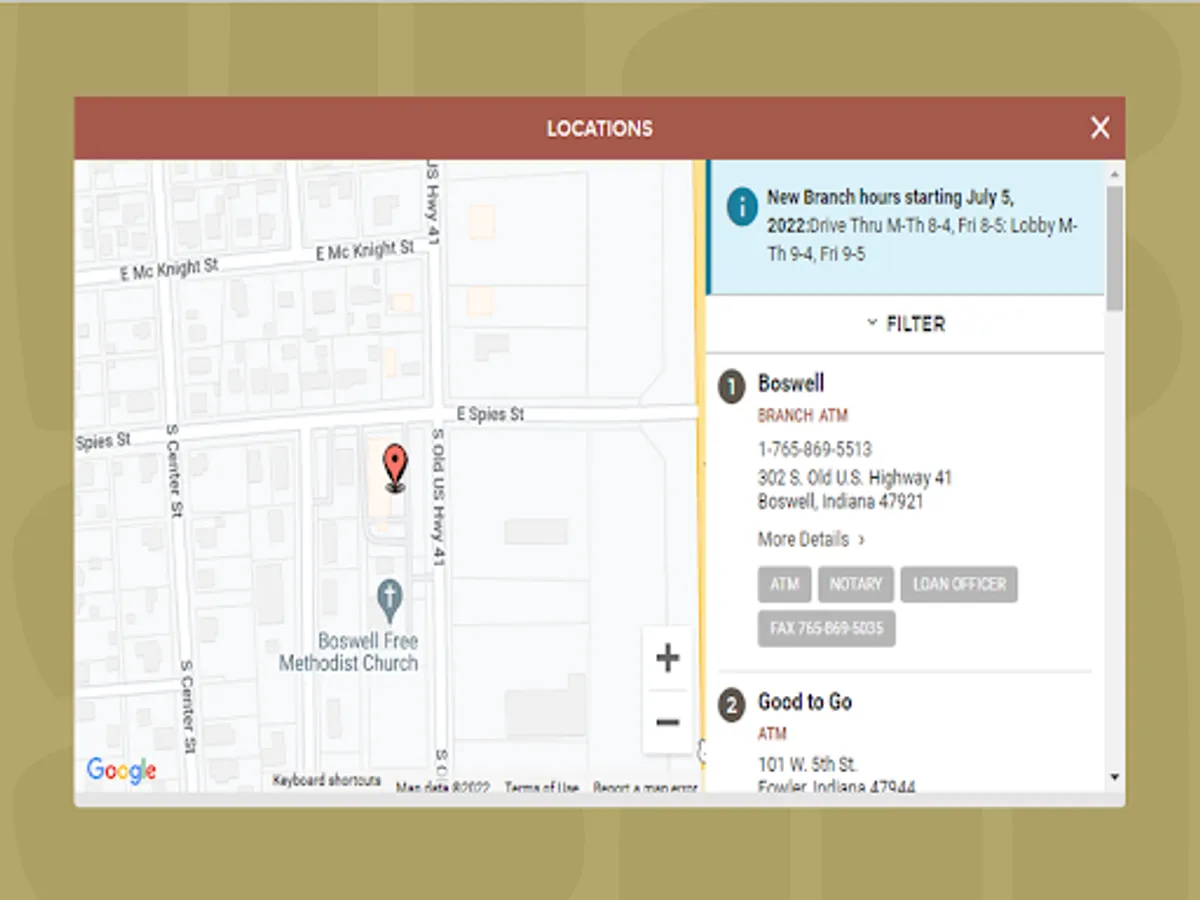 *Locate bank branches and nearby ATMs with detailed maps and directions