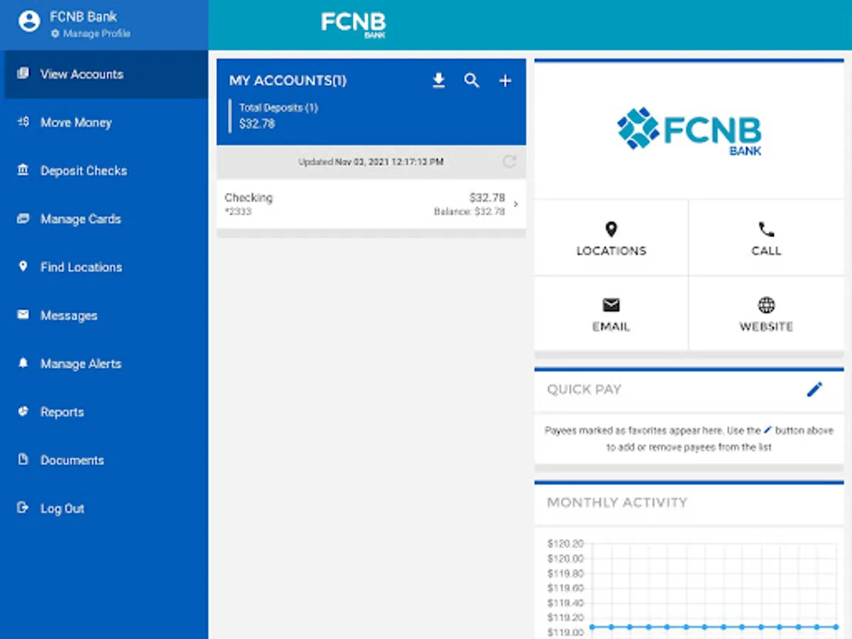 FCNB Mobile Banking by First Community National Bank allows you to bank on the go. It’s free to download and offers quick access for managing your bank accounts. Check your balances, pay bills, transfer money, and locate ATMs and banking centers with just a touch. Our native app is fast, secure and free. Use your current login information to start banking today.