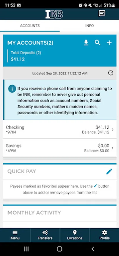 Illinois National Bank mobile banking gives you immediate and secure account access from your mobile device. Manage your money anytime, anywhere. Stay alert with account activity with customizable account alerts. Take advantage of all of these options and more by signing up for INB's Online Banking now.
