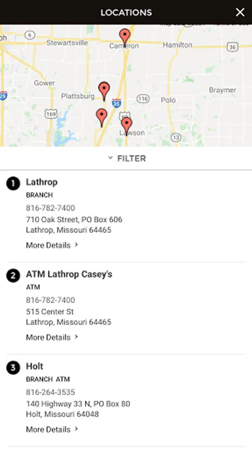 • Find our ATMs and Banking Centers using the GPS system provided by your Phone.***