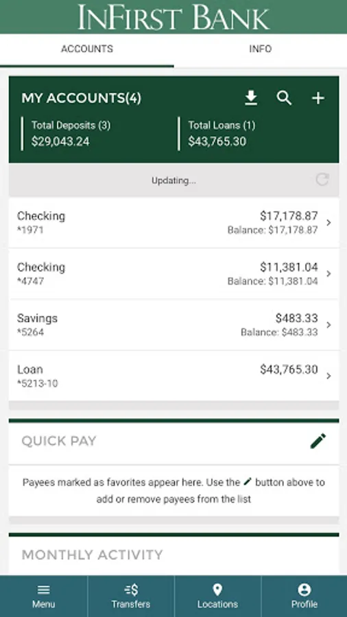 With InFirst Bank's Mobile Banking App, you can: Check your balances, view recent transactions, pay bills,view and activate your cash back offers, deposit checks (phone only at this time--tablet check deposit coming soon!), transfer funds to eligible accounts, locate an ATM, and access your accounts with as much security as Online Banking