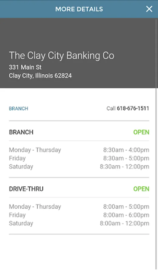 You can contact us at 1-618-676-1511 if you have any questions about The Clay City Banking Company’s Mobile App or the self-service registration process.