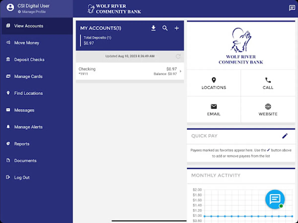 Wolf River Community Bank’s Mobile Banking app is available to customers who have registered for Online Banking and are enrolled in Mobile Banking. To enroll in Wolf River Community Bank’s Online and Mobile Banking, visit us at www.wolfriverbank.com.