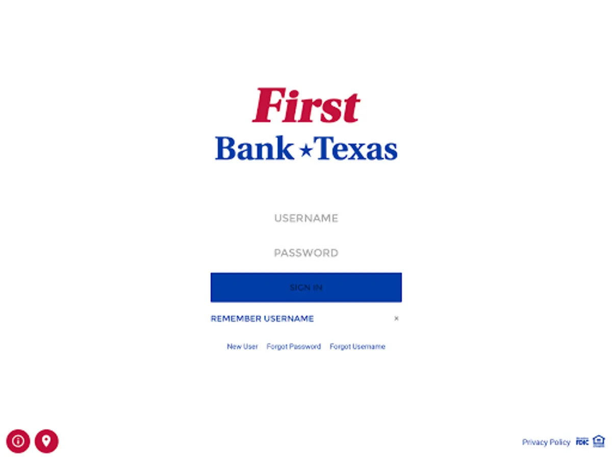 First Bank Texas Mobile Banking app allows you to bank on the go. It’s free to download and offers quick access for managing your bank accounts. Check your balances, pay bills, transfer money, and locate ATMs and banking centers with just a touch. Our native app is fast, secure and free. Use your current login information to start banking today.