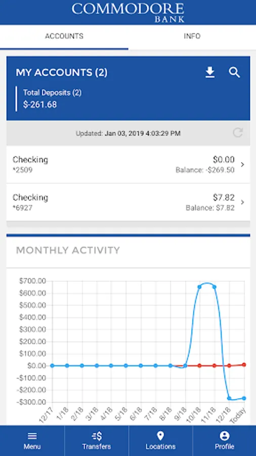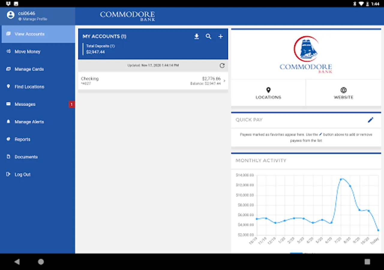 Commodore Bank Mobile Banking App allows you to bank on the go. It’s free to download and offers quick access for managing your bank accounts. Check your balances, transfer money, and locate ATMs and banking centers with just a touch. Our app is fast, secure and free. Use your current login information to start banking today.