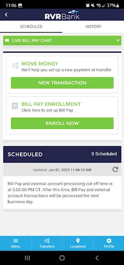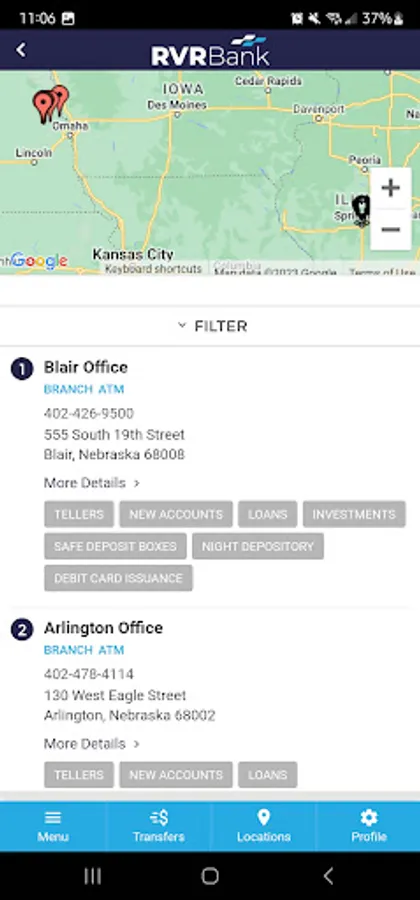 You can contact us at 1-402-721-2500 if you have any questions about the RVR Bank Mobile App.