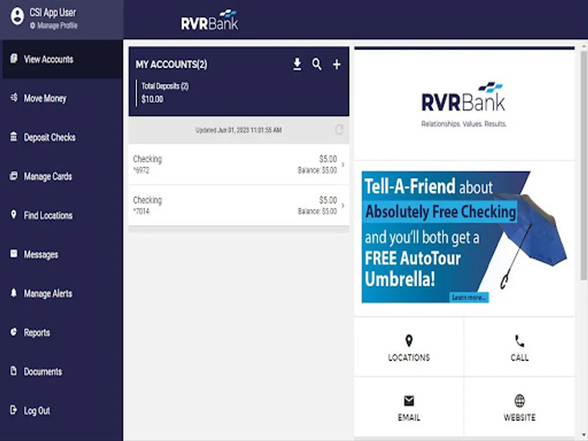 With RVR Bank Mobile Banking App you can safely and securely access your accounts anytime. Our mobile app is FREE and allows you to: