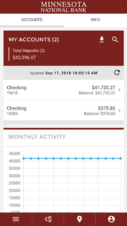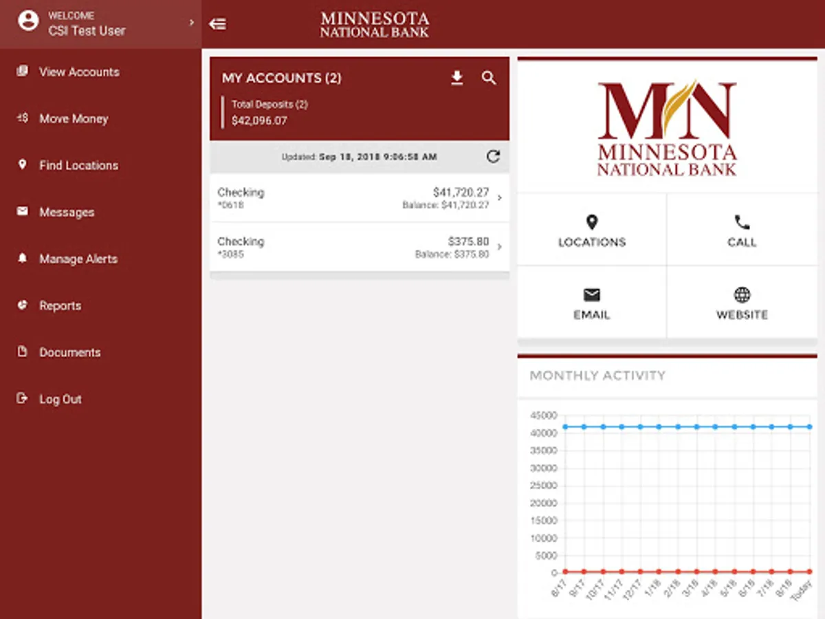 Minnesota National Bank's Mobile Banking supports all account types including checkings, certificates-of-deposits, savings, and loans.