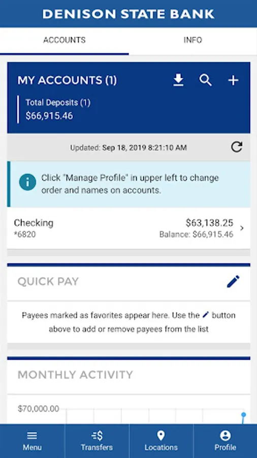 To use this app, you must be a Denison State Bank account holder and be registered for DSBconnect digital banking. To register on a browser, go to www.dsbks.com and click “Sign Up” in the Login area on right; to register from the app, download the app to your device from App Store and click the “Sign Up” link at the bottom of the app home page. Once registered, you can login with your unique Username, Password and security questions/answers that you select during the registration, and can activate Face ID/Thumb ID logins in the Profile menu.