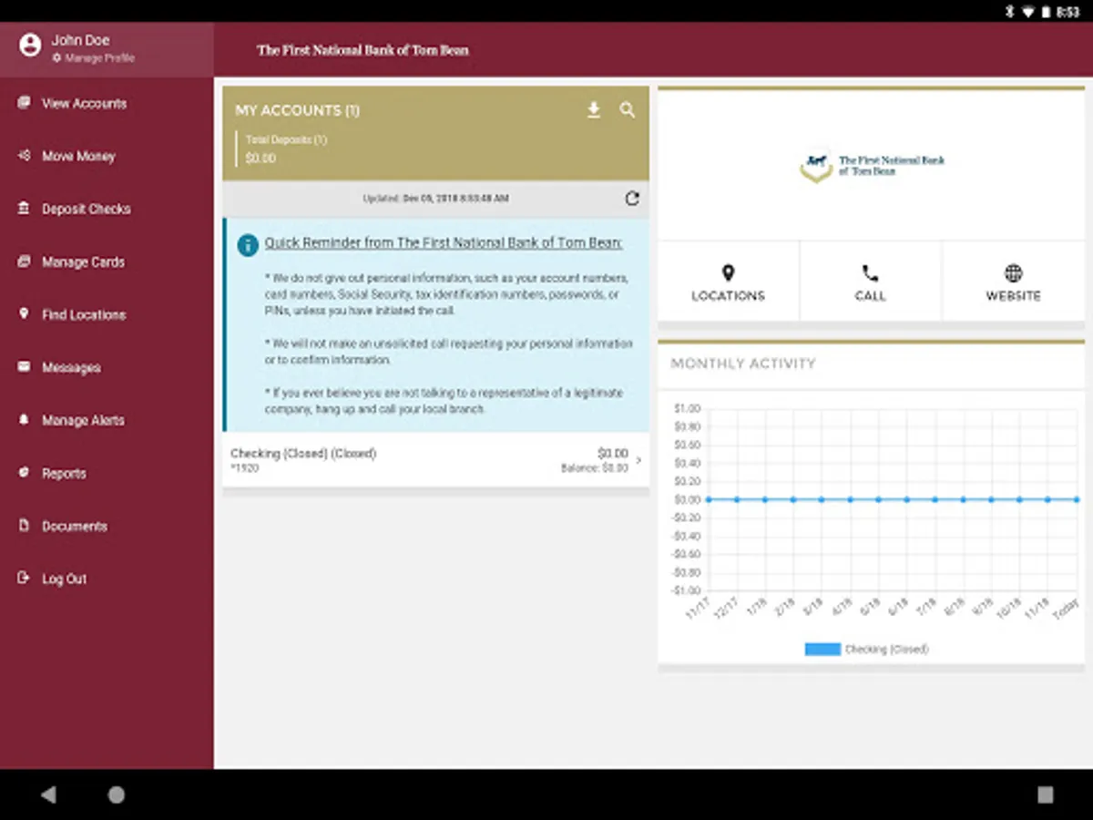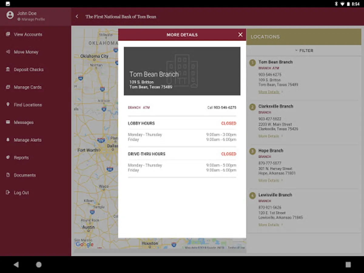 You can contact us at 903-546-6275 if you have any questions about The First National Bank of Tom Bean’s Mobile App or the self-service registration process.
