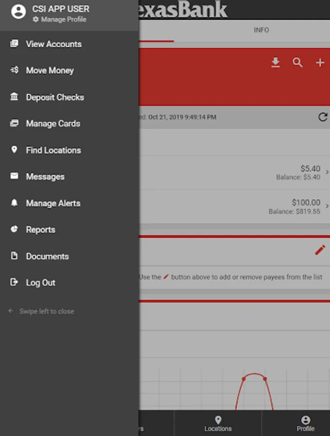 • Utilize the device GPS to get directions and access to branch locations and ATMs