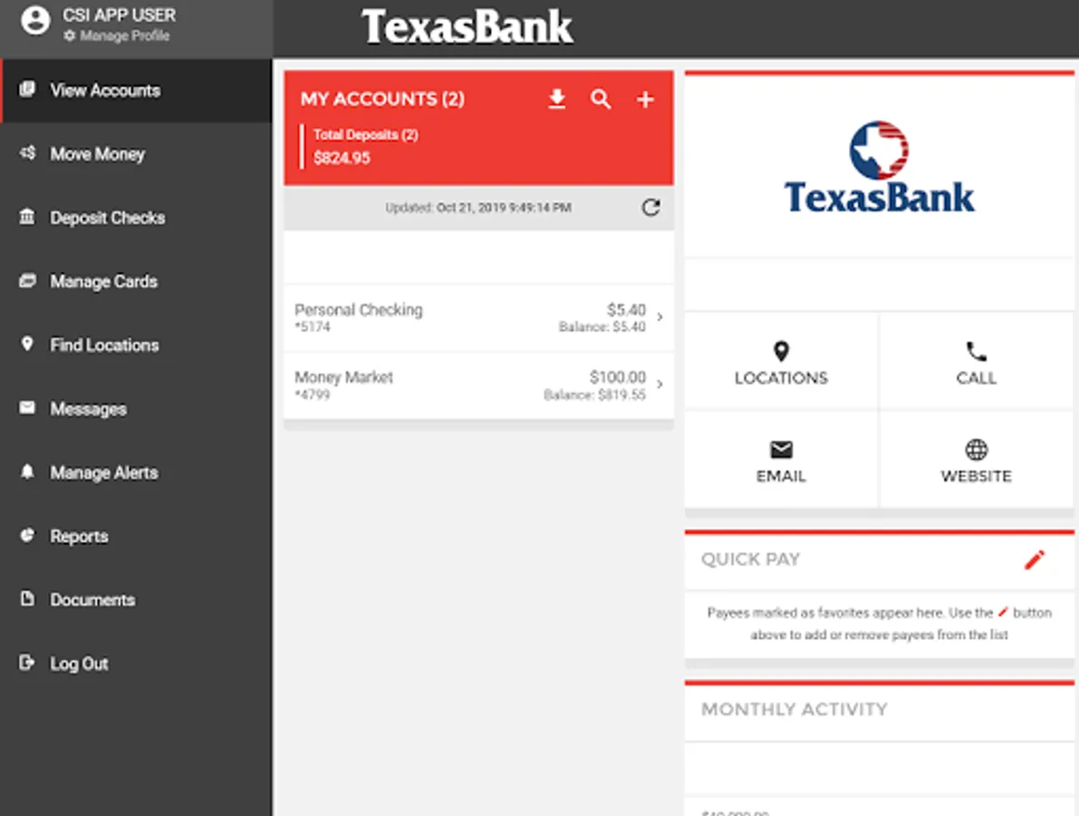 • Transfer funds between TexasBank accounts