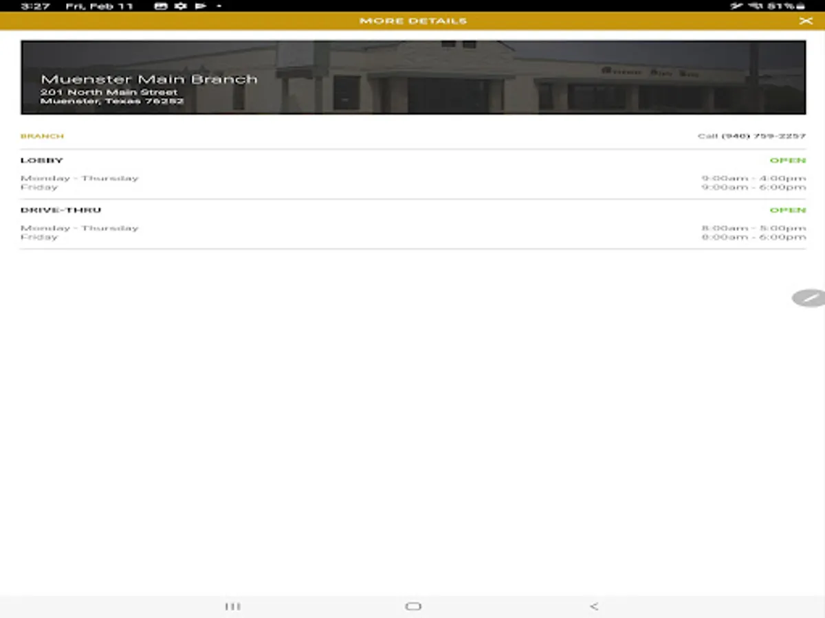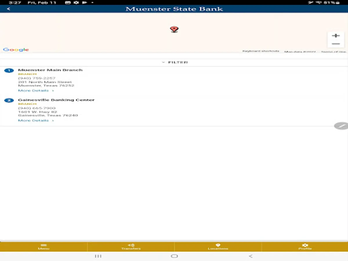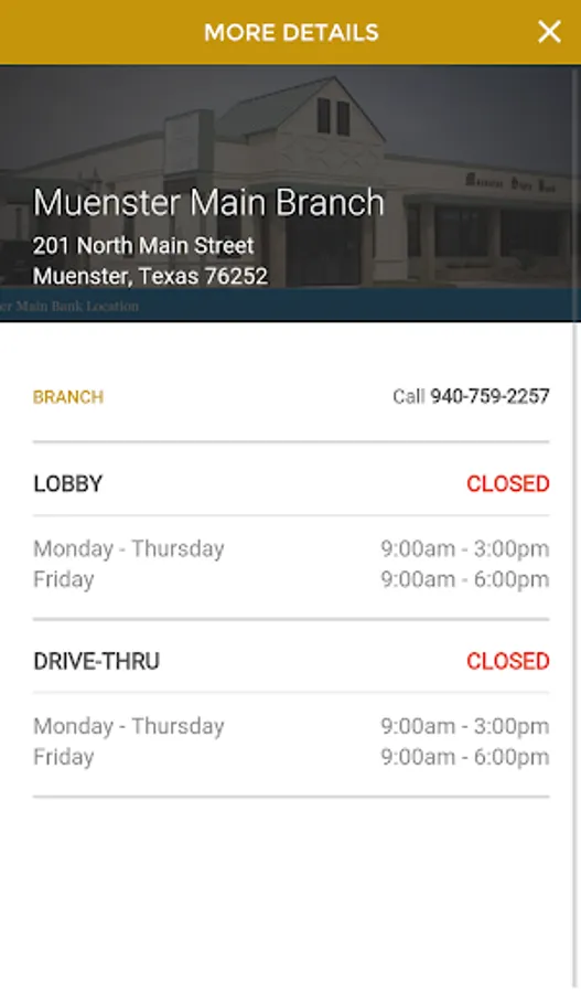 You can contact us at 1-940-759-2257 if you have any questions about the Muenster State Bank Mobile App.