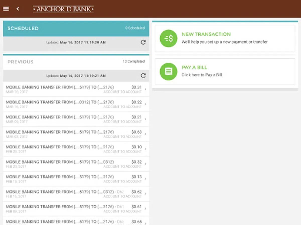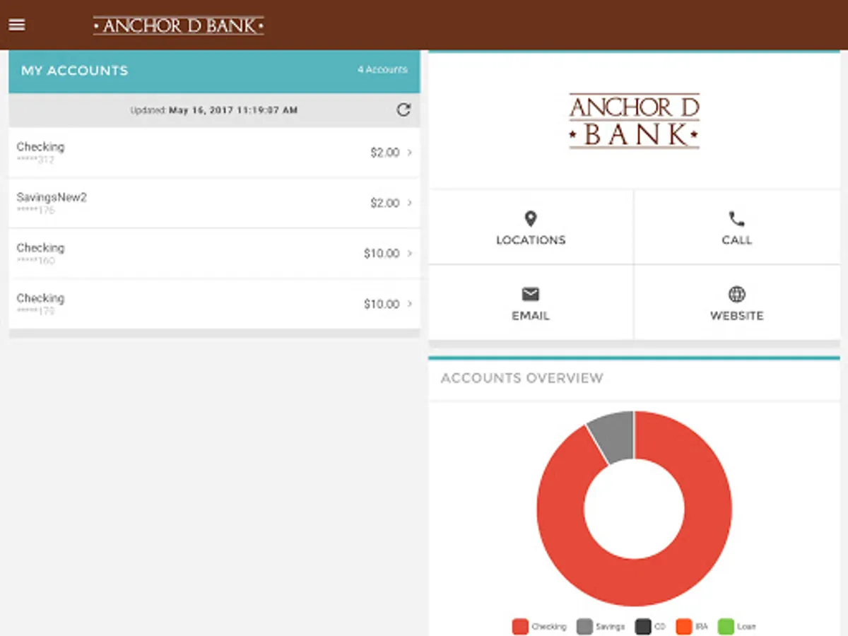 The Anchor D Bank Mobile App allows you to access your bank accounts on the go! You can view balances, transaction history, deposit checks, manage cards and transfer funds at your convenience with your mobile phone.