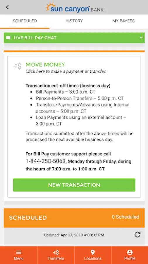 Find Locations: Find ATMs or banking centers easily through the Sun Canyon Bank App.
