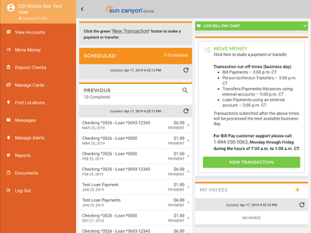 Move Money: Pay companies and individuals easily through the App’s Move Money feature. Set up reoccurring bill payments to make your life easier, manage payment dates, view payment and pay individuals easily.