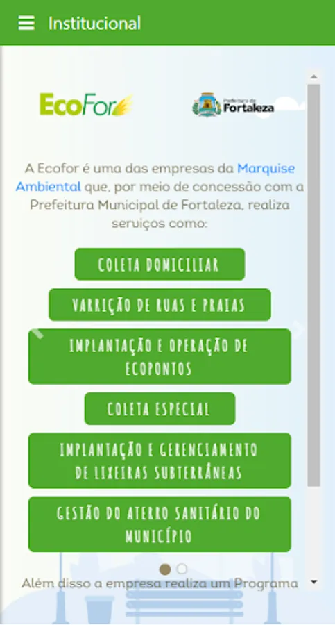 Fortaleza + Limpa aims to inform all the services that our city has, from garbage collection, to the location of Ecopoints.