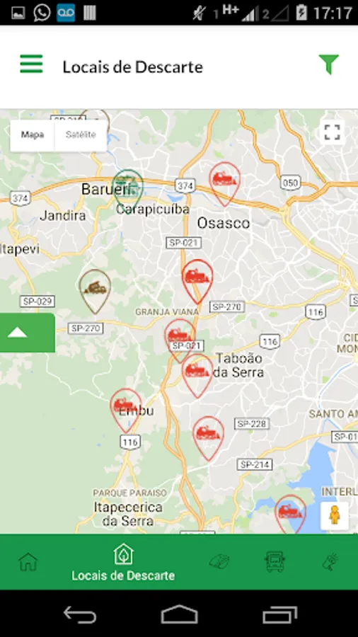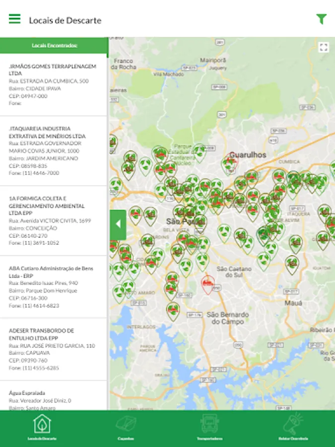 The Clean Scrap It enables the user to find waste disposal sites, consult carriers and generate irregular disposal supervision of occurrences.