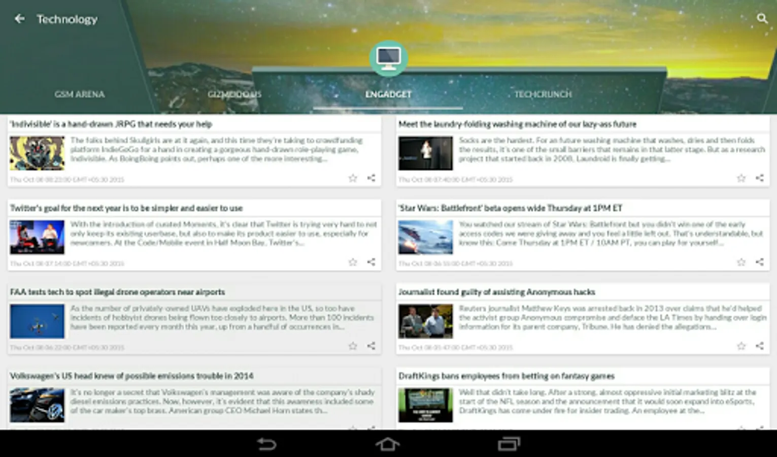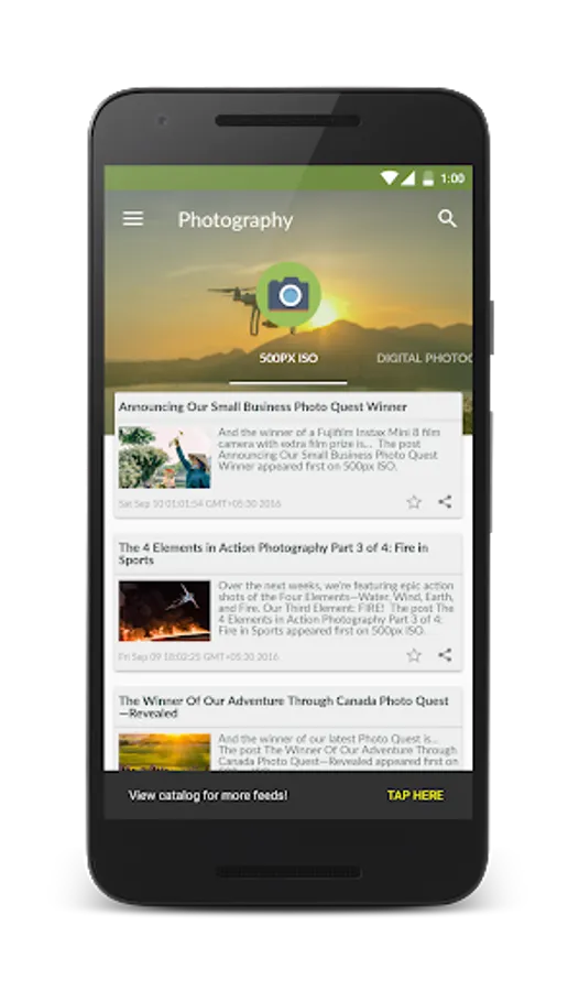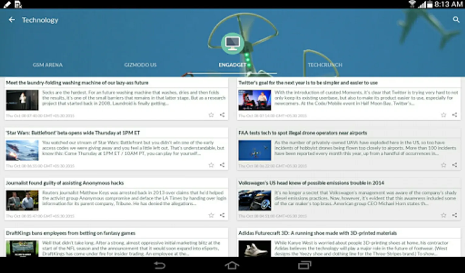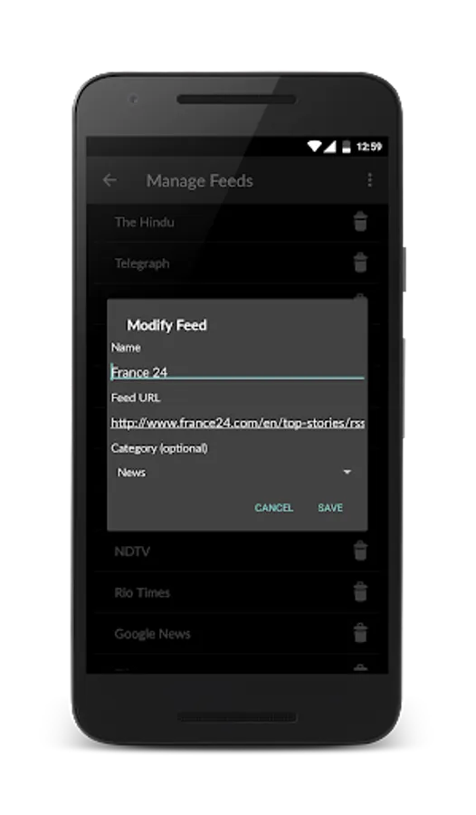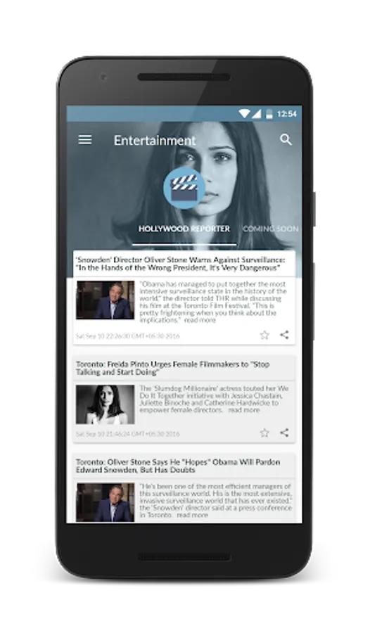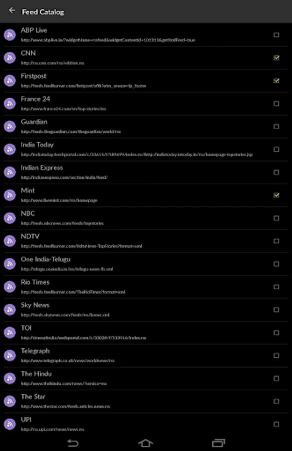 - Default feeds: BBC, Live Mint, Hollywood Reported, Coming Soon, Tech Radar, GSM Arena, 500px, Digital Photography School, Gamespot, Euro Gamer, Cricinfo, Yahoo Sports, Autoblog, AutoCar, Shape.sg, iDiva, Forbes, Reuters.