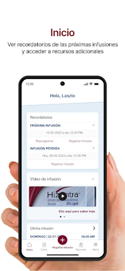 View upcoming and past infusions. View reminders to receive notifications when it's time for your infusion. Easily access Record Infusion and additional content.