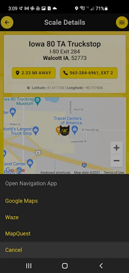 Now you can access CAT Scale locations from anywhere on your Android device! Easily Locate and Save locations based on your current GPS location or custom search!