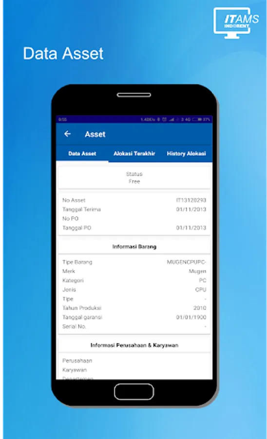 Berfungsi sebagai barcode scanner untuk IT Asset yang berfungsi untuk memudahkan karyawan mengetahui data asset tersebut.