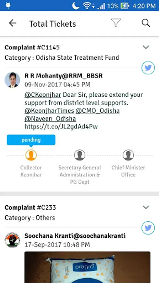 CM Grievance Cell is an application to be exclusively used by the Administration, Government of Odisha for addressing public grievances in state. This app is not a tool for the citizens to send their grievances for resolution. Citizens who want to send their grievances for redressal can send the same on social media by tagging the Chief Ministers office. Check our website for more details.