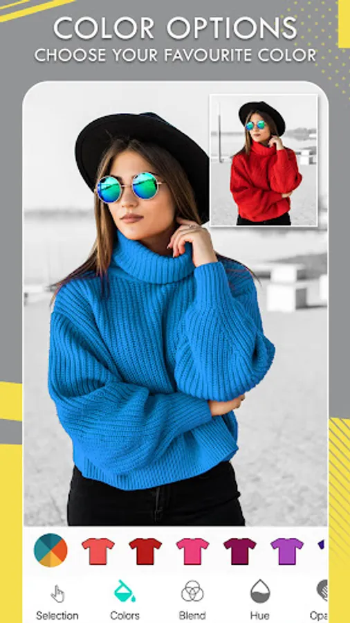 Change dress and clothe color in a photo with our easy-to-use free photo dress color changer app for men and women. It allows to edit and switch color in a photo instantly. It also provides hundreds of virtual outfits and casual, formal, and party wear dresses for men, women, and kids to try. You can also add a beard, mustache, hairstyle, glasses, cap, and all other fashion accessories to the photo. Enjoy Virtual dress-up and share your creation with all.