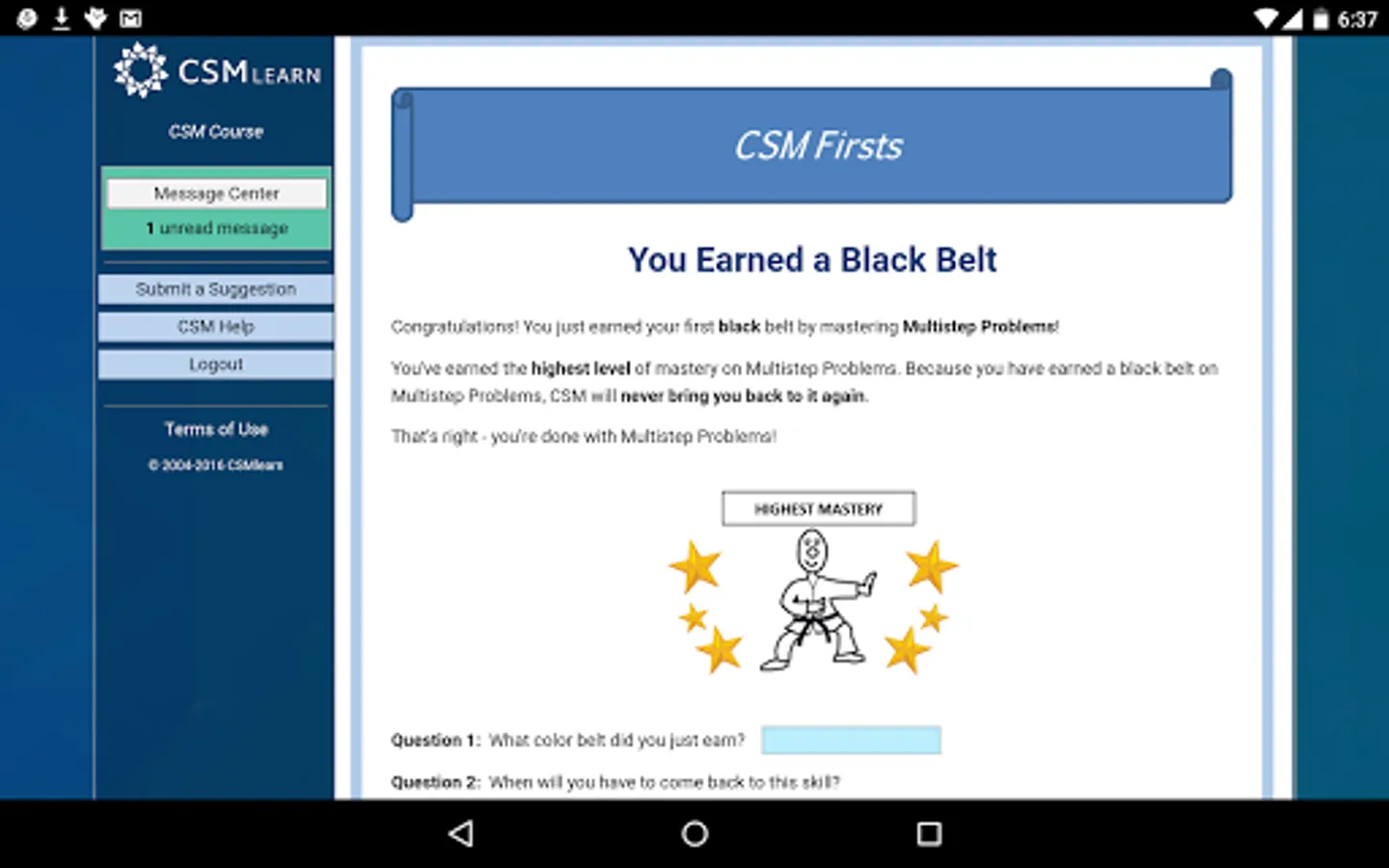 Whether you're thinking of going back to college or earning a GED, or want to move up in your job, or are a company manager who never liked and learned math, CSM can help you. The CSM Course teaches you more than skills - it's about the High Performance characteristics that help you excel at what you do, and give you the well-earned confidence that you can use the skills you have. And you can prove that you're ready to take on the world with the CSM Certificate!