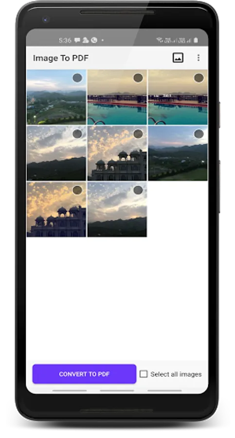 So select multiple images and by clicking on one button generates your PDF and share to your friends.