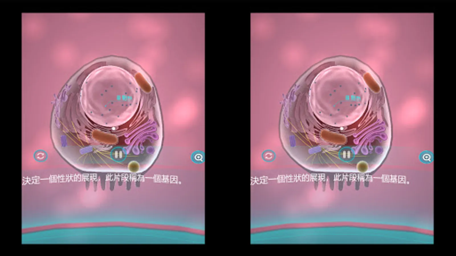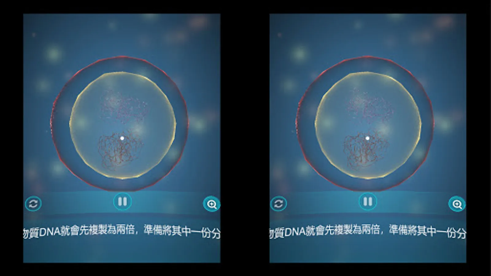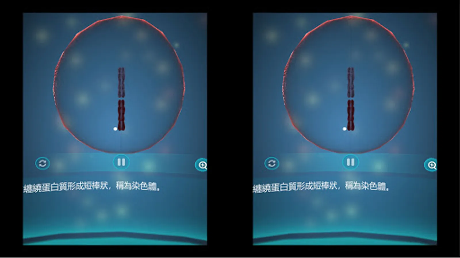 The virtual reality (VR) textbook presents the process of cell division, so that students can understand the changes in the state and number of chromosomes, so that students can understand the difference between cell division and meiosis, and they can understand chromosomes in the process of general cell division. Changes in type and number.