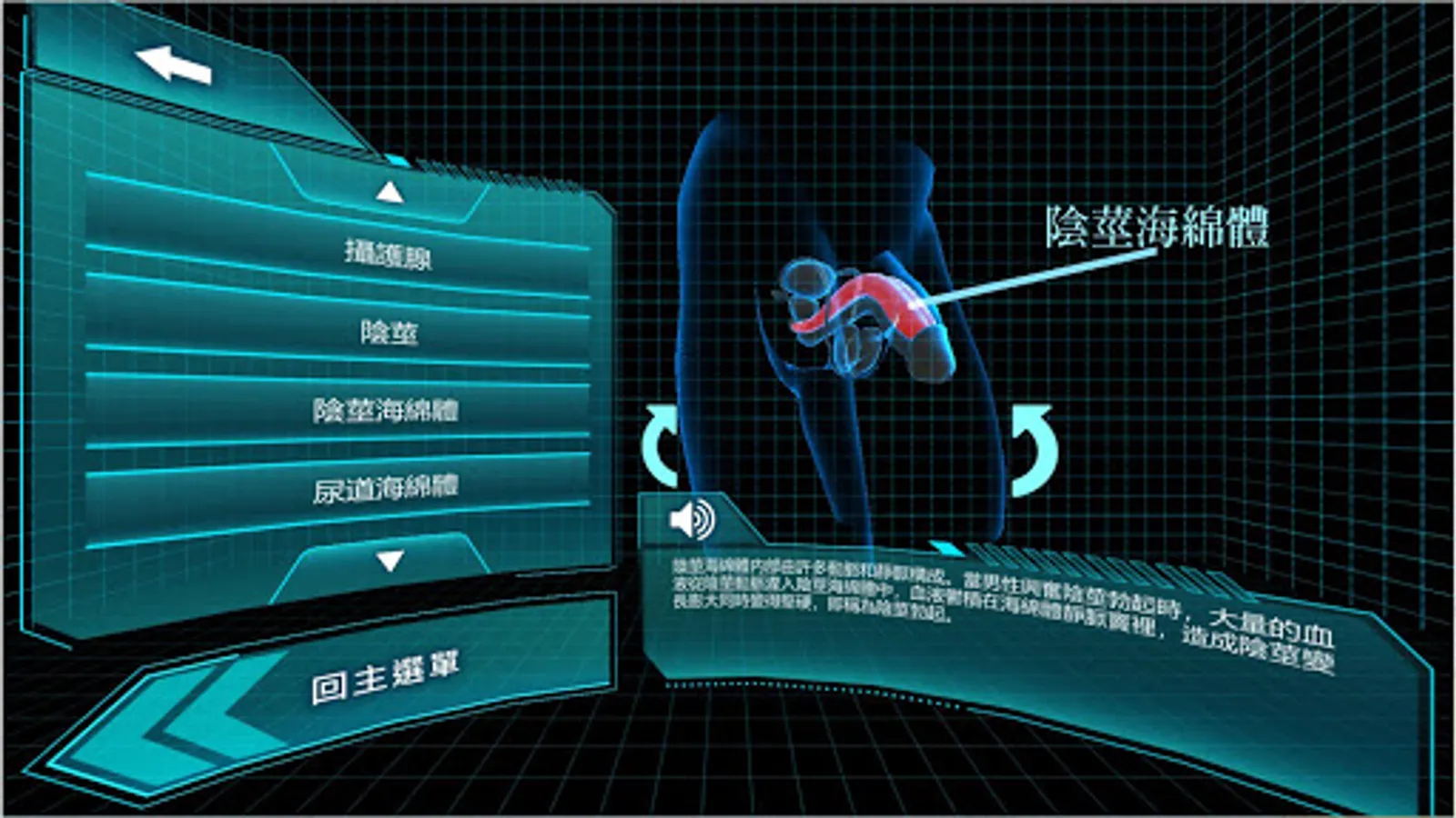 使學生能透過虛擬實境(VR)教材點選兩性器官的各部位,被點選的部位即會呈現紅色,並出現動態效果強調,讓學生可以更身歷其境認識兩性生殖器官,養成健康的性觀念。