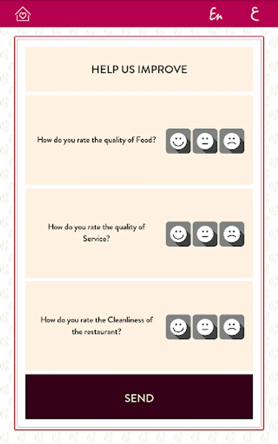 Listen to Customers' needs: Using the "Help Us Improve" section you can listen to your customers' feedback and monitor the satisfaction rate on Food, Service and Facilities.
