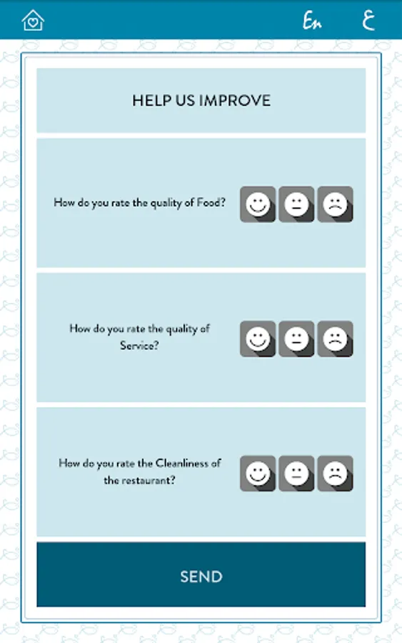 Listen to Customers' needs: Using the "Help Us Improve" section you can listen to your customers' feedback and monitor the satisfaction rate on Food, Service and Facilities.