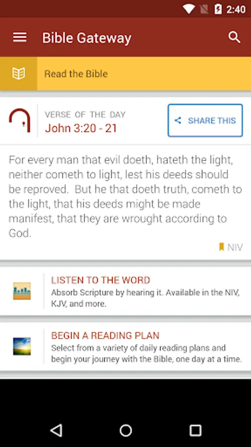 The Bible Gateway App makes it easy to read, hear, study, and understand the Bible. With the Bible Gateway App, you can: