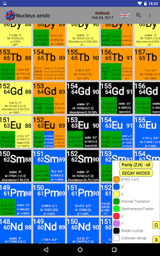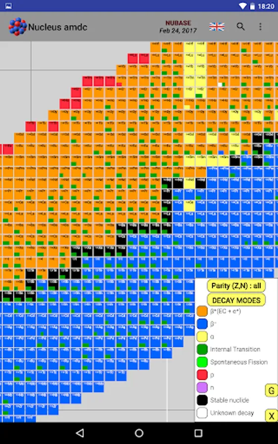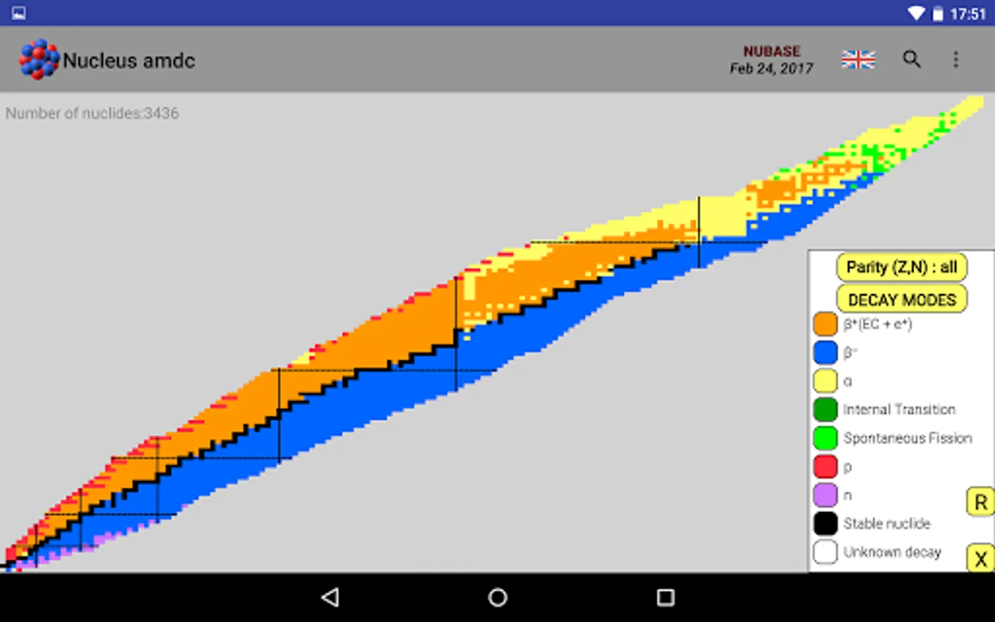 NUCLEUS plots a chart of the nuclides and colours it according to any