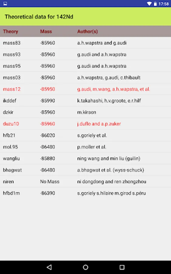 NUBASE: corresponds to the "horizontal" nuclear database NUBASE,