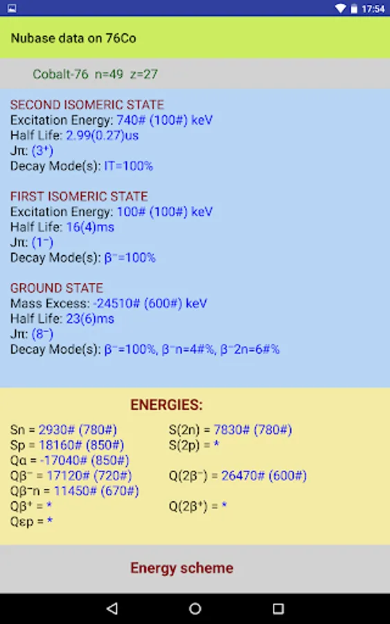 PUBLIC: is derived from the NUBASE module. The data are presented in a