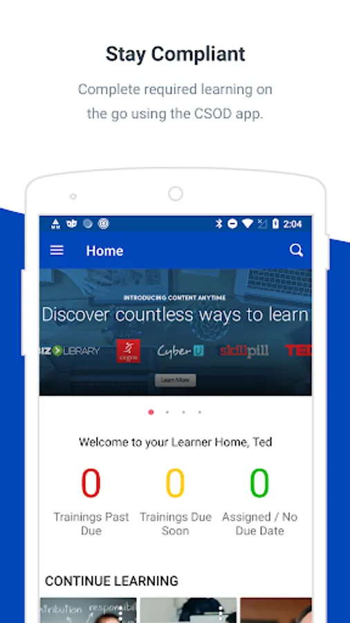 The Cornerstone CSX App delivers powerful learning straight to your mobile device and helps you work smarter in your Cornerstone OnDemand portal. Cornerstone CSX App lets you complete your required learning, browse courses, and discover new content based on your interests, job role and career. Whether you want to be more efficient managing your assigned learning or build new skills by finding new courses, Cornerstone CSX App has something for you.