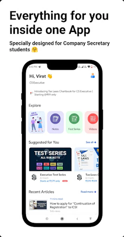 The app enables you to get unlimited access to Notes, videos, Test Series, ICSI Updates, Mentorship Programs and more.