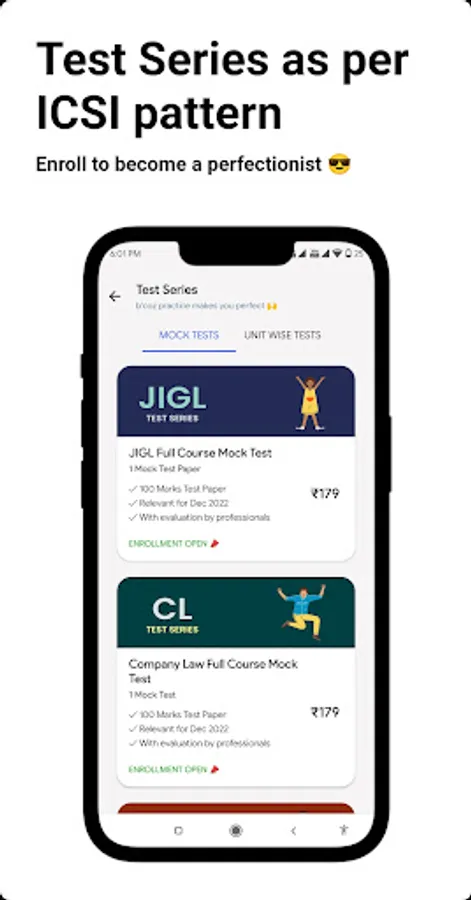 📲 Test Series: Enroll in various tests before exam, practice with mock tests & unit wise tests designed as per ICSI pattern to make yourself a perfectionist.