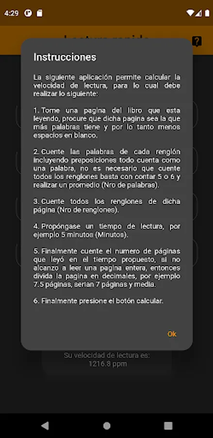 The following application allows you to calculate the reading speed, for which you must do the following: