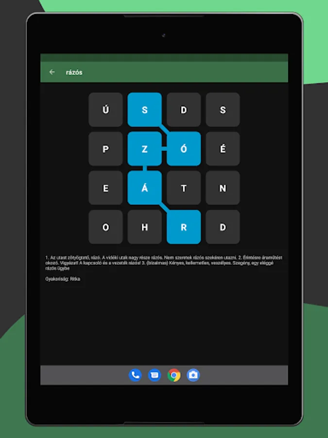 During the word search game, you have to make words out of letters by connecting the letters on the board. We can form words by moving in any direction. The game only takes into account Hungarian root words, not inflected, enhanced, and formed forms. It is excellent for a little rest, mental refreshment and honing our active and passive vocabulary. Recommended for both young and old.
