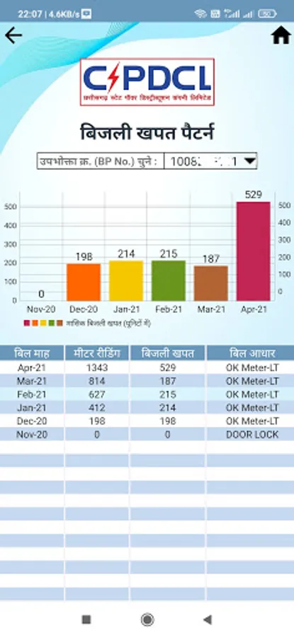 4. बिजली खपत पैटर्न - पिछले 24 माह के बिजली खपत का पैटर्न देखने की सुविधा