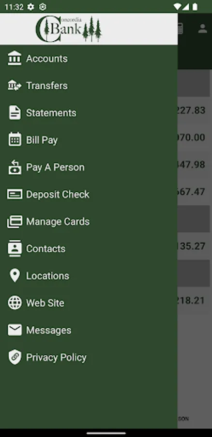 With the Concordia Bank Mobile App you will have the ability to check balances, schedule transfers, view statements, schedule bill payments, send secure messages to your bank and deposit checks 24 hours a day / seven days a week.