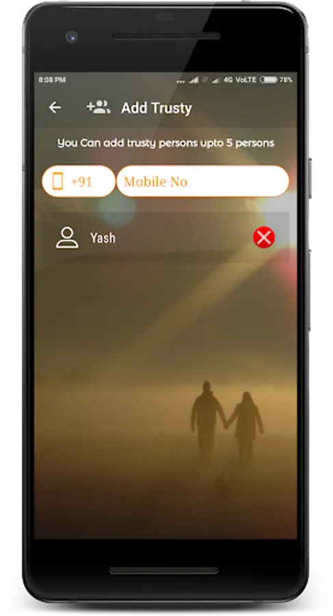 This is an personal security app, which helps you to inform about your dangerous situation to your trusty persons..