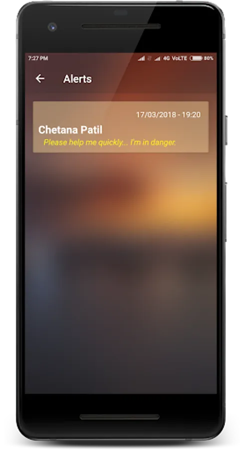 • If you are trusty person of someone then you will get their alerts in 'Alerts' menu and there you can see Message, Location, photos and Voice Recording of that person.