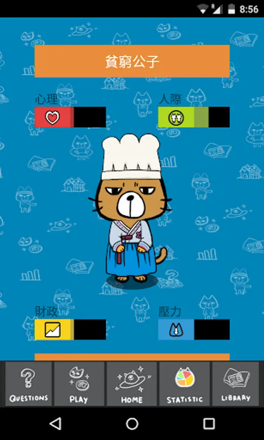 This is a character growing game which is designed to deliver the mental health knowledge from 4 areas including depression, interpersonal & communication skill, stress management and financial management. Players will learn the knowledge by answering role playing questions, and at the same time, he/she will earn new costumes for decorating their own “Meow” avatar.