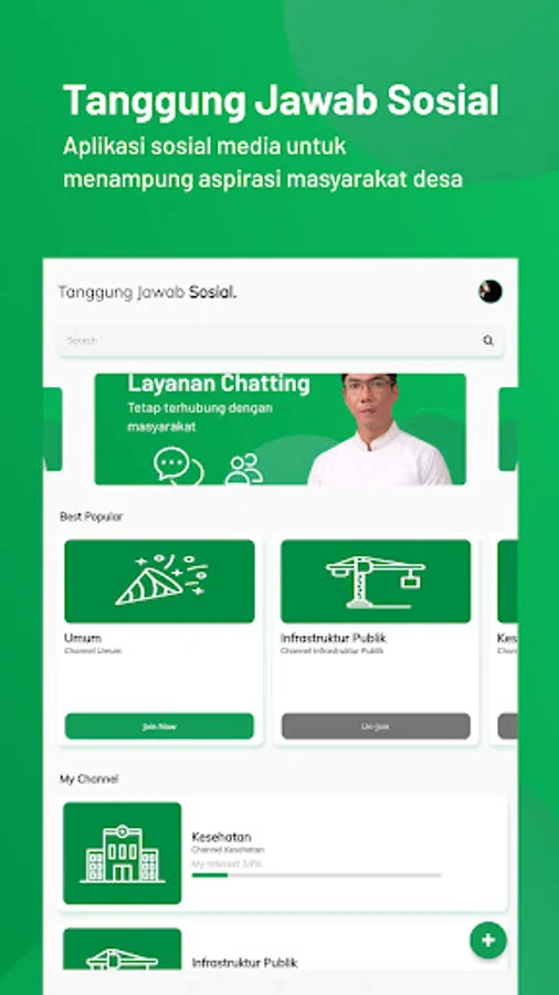 The Rino Lande application is an application to accommodate aspirations for the advancement of society. This application is a means of sharing, communicating, and interacting between village communities. In this application, people can share photos, videos, texts and can also join channels according to people's interests.