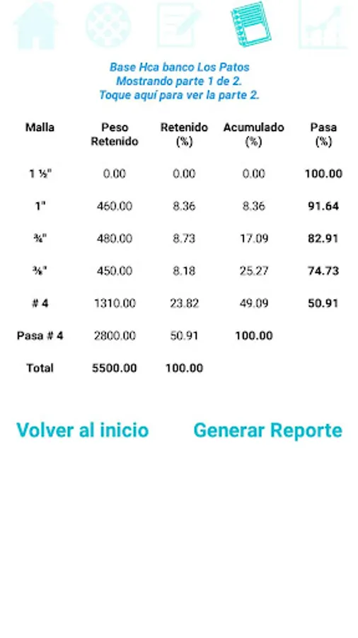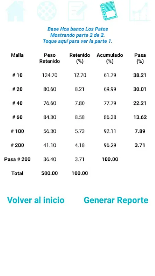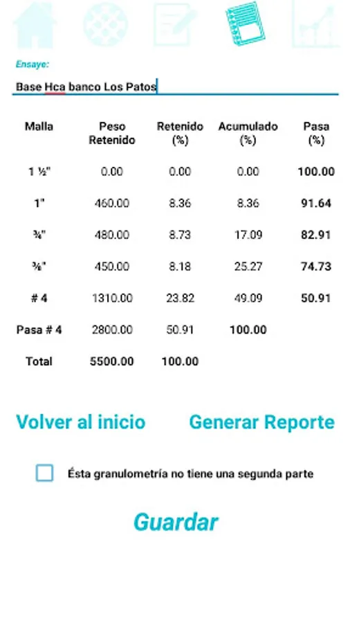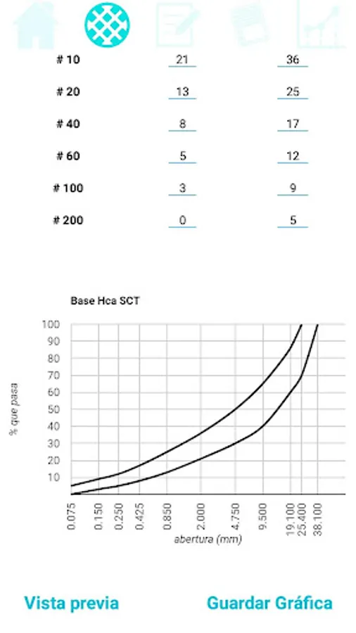 Now you can save the data, comes in handy when you have a two part granulometry, save as much granulometries as you desire and consult them anytime you want.